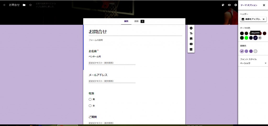 お問合せのフォームを作成しそれをブログのサイドバーのアイコンからリンクをはりたいとの要望。今までフォーム作成は無料のフォームズというサイトを利用してきましたが、Googleでも無料のフォーム作成があるのを知り使ってみる事にしました。へぇー、画... -