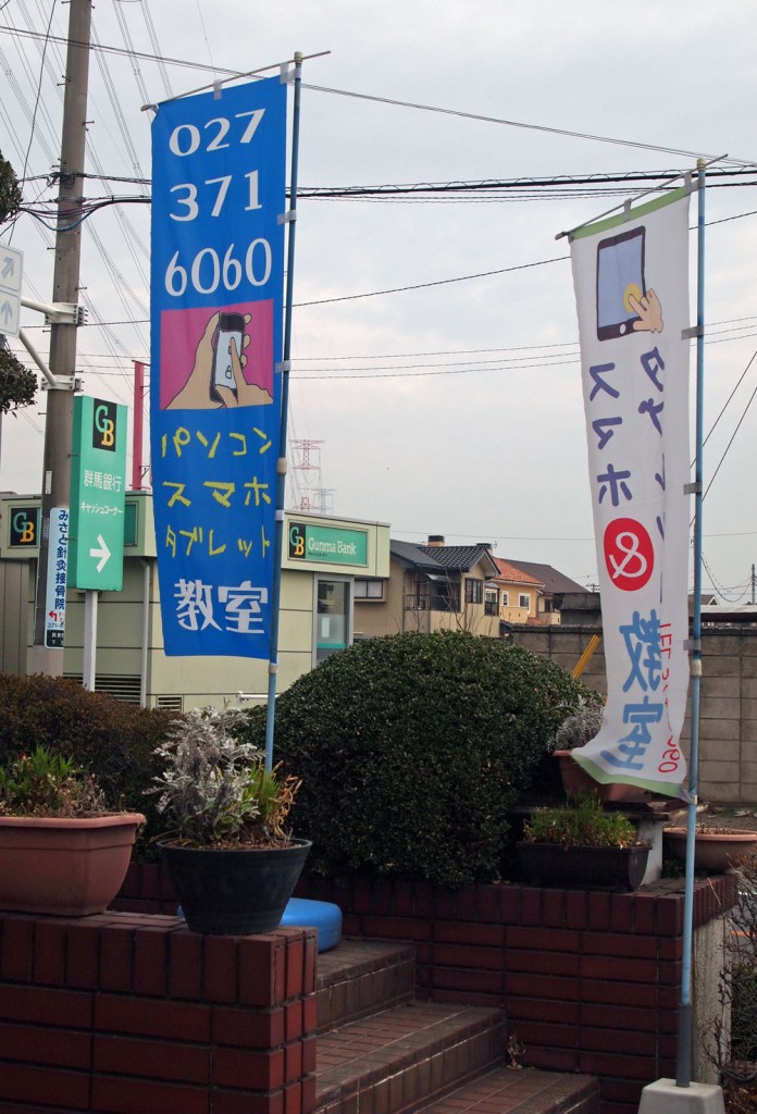 最近の傾向としてパソコンを始めて始める方、ワードやエクセルの基礎を学びたいという方が例年のこの時期と比べても多い。それとスマホ・タブレットの問い合わせも増えてきています。電話番号がわからなかったので直接お見えになって、留守なのでのぼり旗...