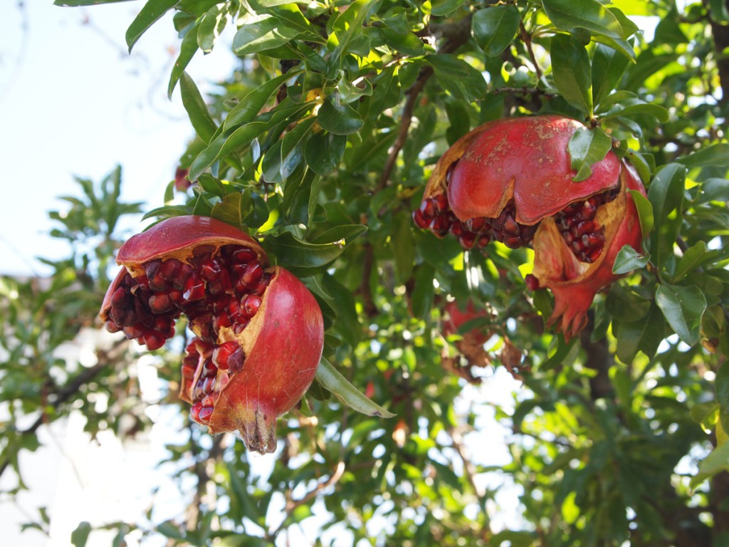 近くの畑にザクロの木があります。もう少ししたらザックリ割れるでしょう。近所の方と顔を会わせたら「1個いただけますか?」とお願いしてみようかな? -
