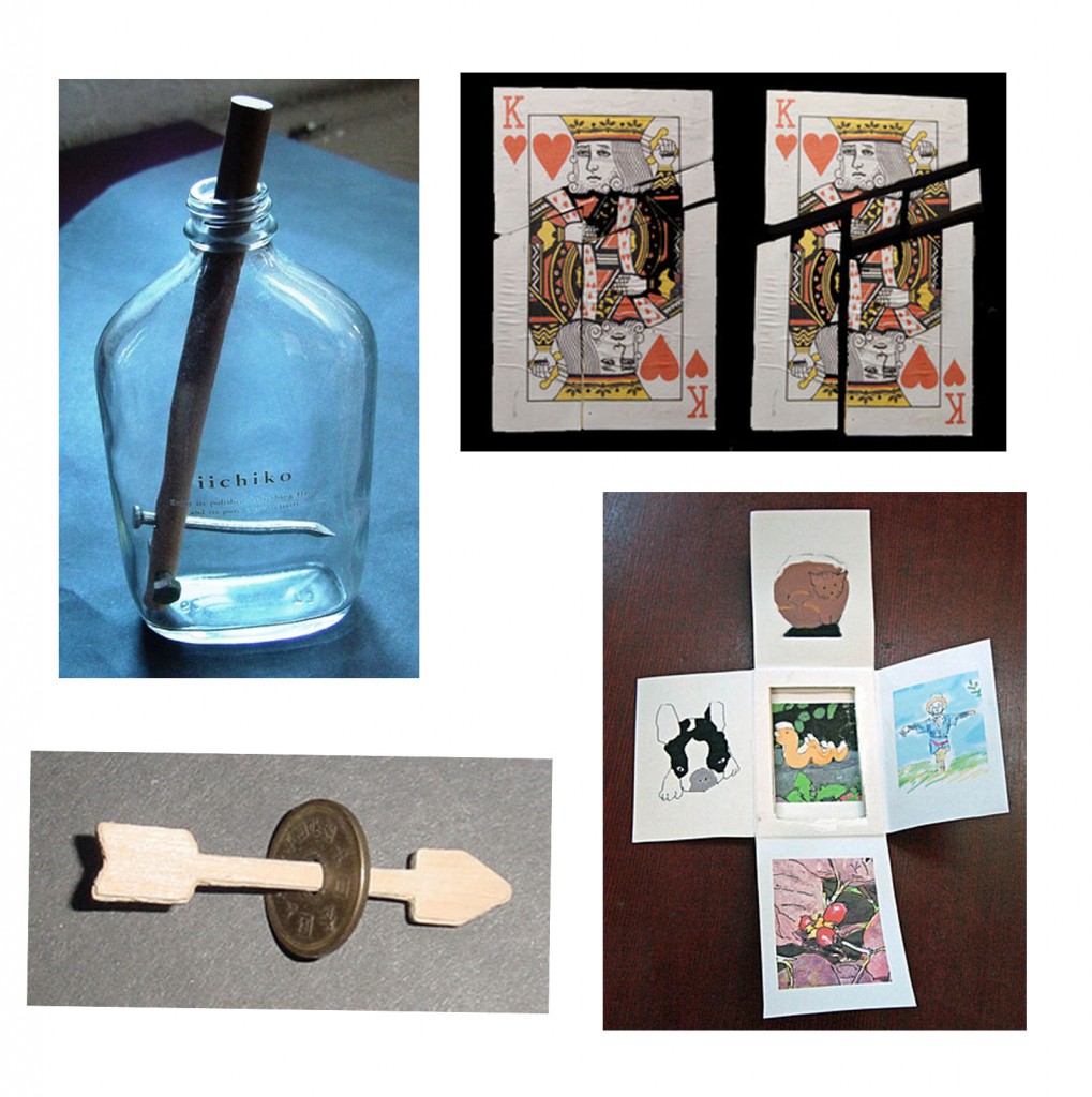 パズル類を集めたり作ったりしてます。ブログに載せたうちの4件を紹介させていただきます。パタパタパズル5円玉パズルキングのカードナットとビン -