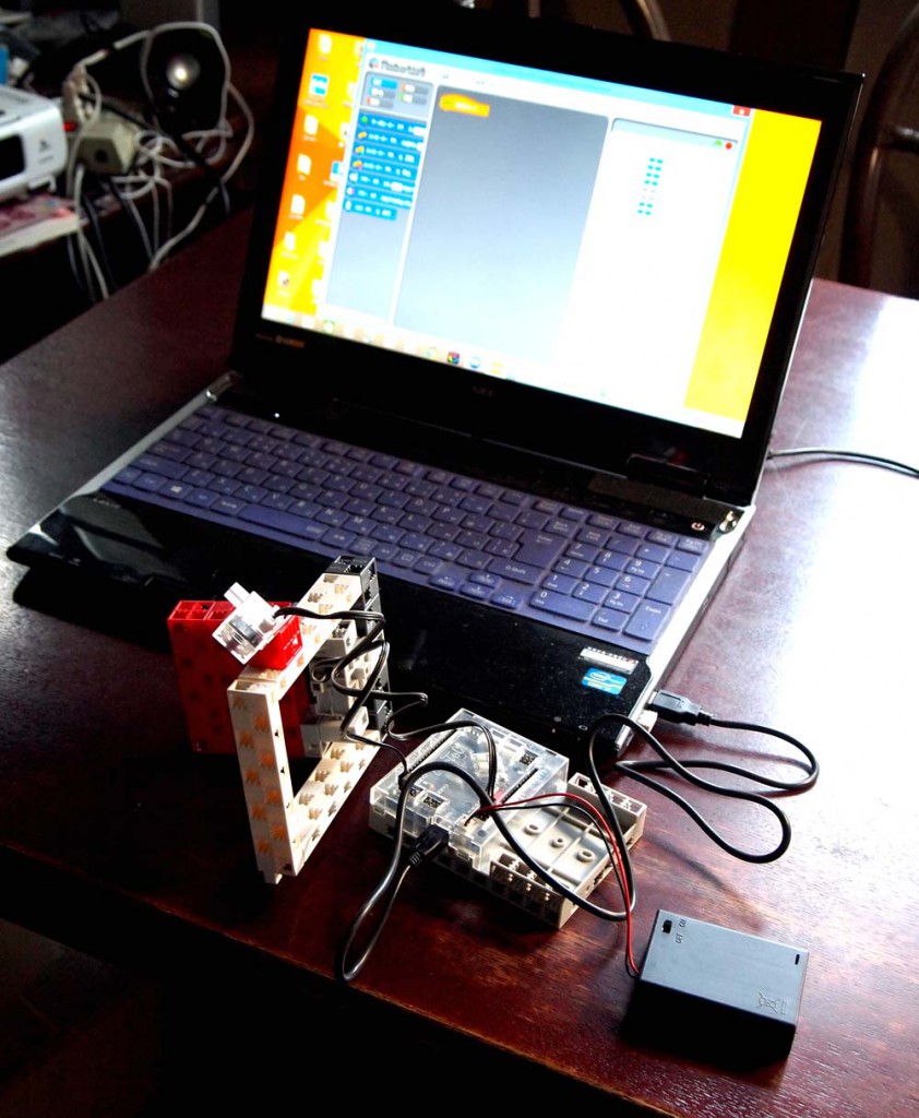 ロボットプログラミングの自動ドアを作ってみました。パソコン上のスクラッチに似た画面で命令をすると動きます。アーテック社のスタディーノを使ってやってみました。 -